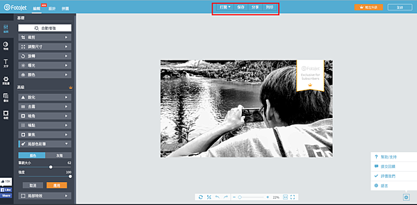 步驟四、可以開始進行編輯動作了(提供蠻多好用的功能,多尼測試用了一下不錯很實用,不過缺少HDR特效濾鏡哈哈!!)