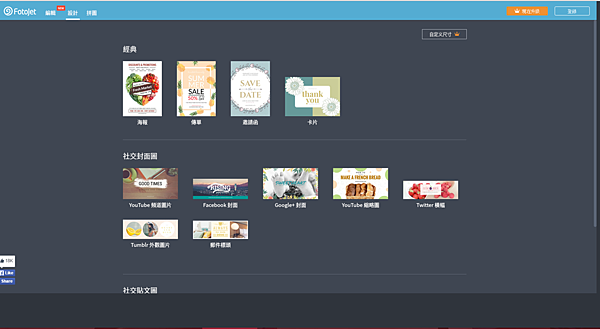 這邊有提供很多預設模板給大家使用臉書封面等,多尼推薦給大家要快速製作蠻不錯用的!!