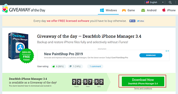步驟一、前往「活動頁面」,然後點選「Download Now DearMob iPhone Manager 3.4」