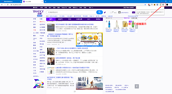 步驟三、按一下瀏覽器右上角「一鍵全頁截圖」的相機圖示